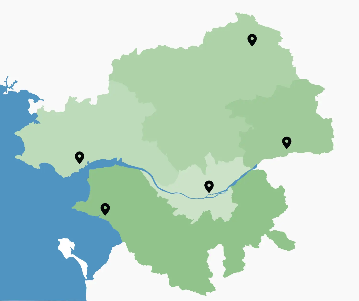 Nous intervenons sur les délégations de Nantes, Saint-Nazaire, Chateaubriand et Ancenis (cf. carte ci-dessous) auprès de tout type de profil de personnes en difficultés.